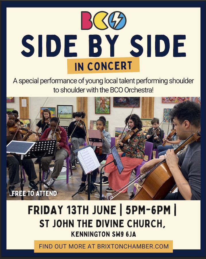 A special performance of young local talent performing shoulder to shoulder with the BCO Orchestra Date FRIDAY 13TH JUNE 5PM-6PM| Location ST JOHN THE DIVINE CHURCH, KENNINGTON SW9 6JA |